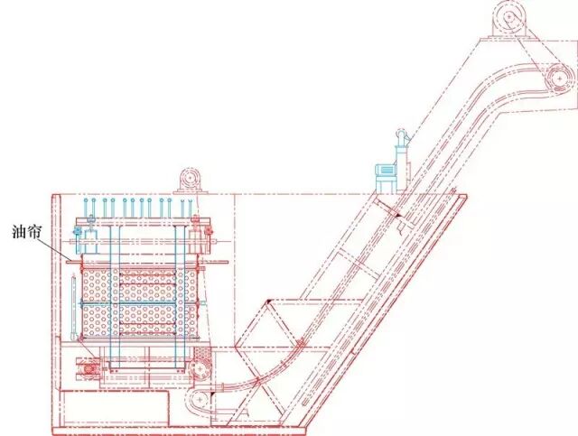网带炉的落料斗常见形式有直落式和斜落式两种:直落式适用于处理中小规格的轴承零件,斜落式适用于处理中大规格的轴承零件。从轴承光亮性角度分析,直落式明显优于斜落式:因为斜落料的零件滑入淬火油后时会不可避免地溅起大量油珠落到落料板上,之后的零件在落料斗上滑过时端面会由于沾到这些淬火油而极易产生黑斑。而直落料结果则不存在该问题,且油幕帘能够更好的将淬火油烟封住,防止其窜入炉膛,影响炉膛气氛或附着套圈表面而造成套圈光亮性不佳。